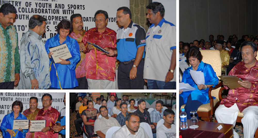 In 2008, MIYDF held a National Indian Youth Forum attended by 73 NGOs in Malaysia. The highlight of the Forum was the conclusive findings made on the causes of high incidences of social ills amongst the Indian youth. The Forum was officiated by the then Minister of Youth and sports, Dato Sri Azalina Othman and the then Works Minister and MIC President, Dato Sri Samy Velu.